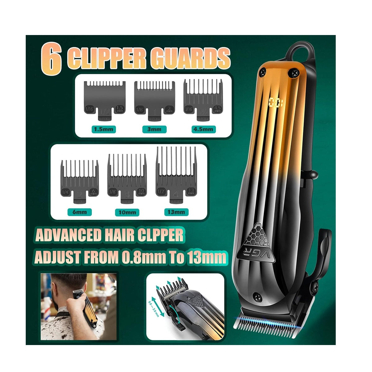 Juego 3 en 1 para hombres: este juego de cortapelos multiusos incluye una cortadora de pelo inalámbrica, una recortadora de pelo/barba y un afeitado de doble lámina, 6 peines guía de recortadora de cabello (1,5/3/4,5/6/10/0.512 in), cepillo de limpieza, 4 peines guía de recortadora de detalles (1/2/3/0.157 in), 2 cables USB, bolsa de viaje, aceite lubricante, peine.